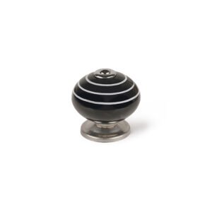 Blíster com 4 puxadores redondos para móveis. fabricado em porcelana e acabamento preto-branco. mod. e503 ø40mm. rei